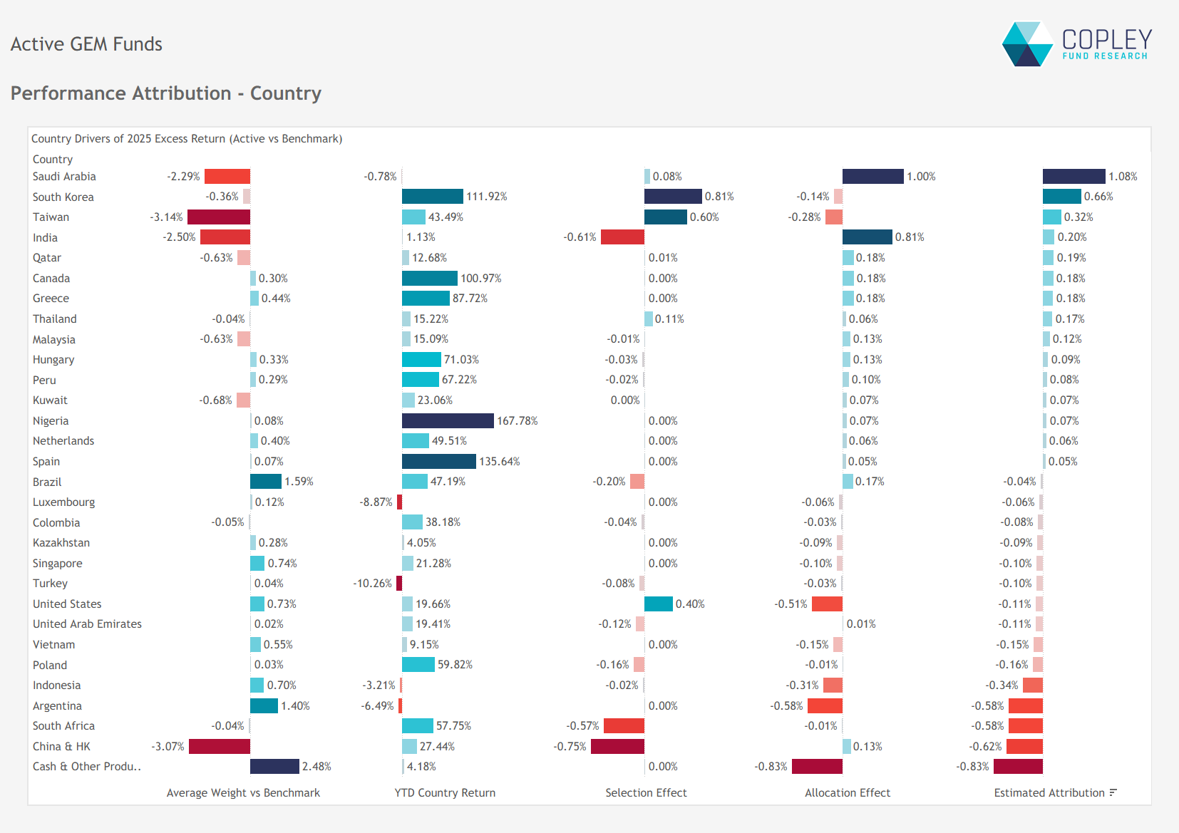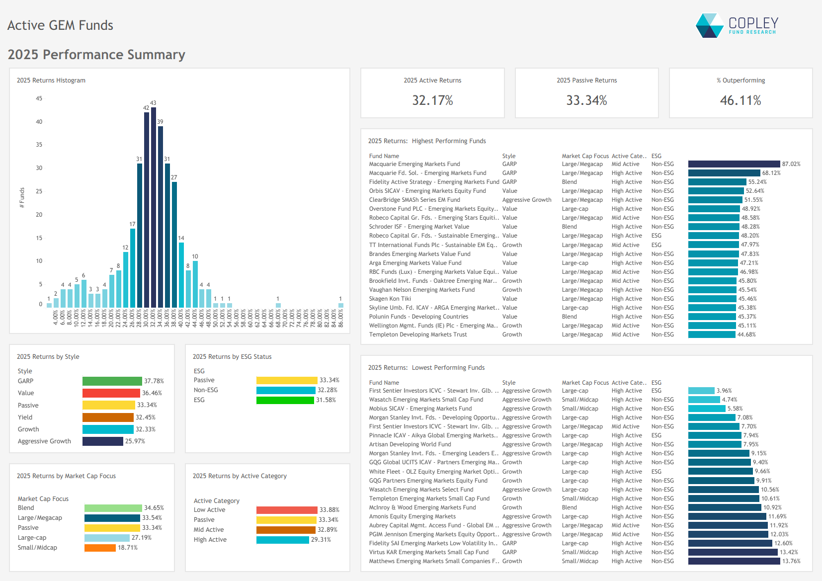Active GEM Funds: Performance & Attribution 2025